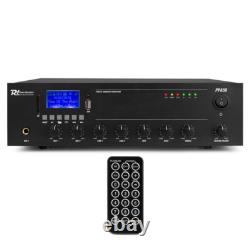 The PPA series is a series of 100V amplifiers with 8 ohms 70V and 100V outputs characterized by easy use excellent performance and reliability and is therefore particularly suitable for a wide range of small and medium-sized installations. This range of amplifiers is equipped with a multimedia player (USB / SD ports and Bluetooth) for MP3 playback. It is also equipped with an equalizer (on the mp3 player) 2 microphone inputs an auxiliary input and an external 12V connector too. MP3 player with USB and SD slot. Bluetooth receiver for Audio streaming.
