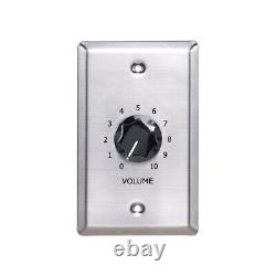 100V / 8 Ohm operation. Tappings Power: 10W, 20W, 40W. Frequency response: 50Hz - 20.000Hz. Dimensions (L x W x H): 272 x 118mm. CCA2112 - 100v Line Attenuator Volume Control Wall Mount Face 100W Audio Installation.The PDVC100 is a volume controller with high-quality attenuation and stainless steel finish, for 100V sound systems. The stylish stainless steel front plate is a modern, clean-looking panel with ten-step, easy-to-read level increments, and off.