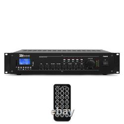 Especially designed for applications such as paging announcements intercommunications background music broadcasting in industrial plants etc. 240W 100V 6-Channel mixer amplifier. MP3 Player with USB/SD slots.