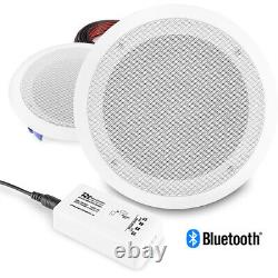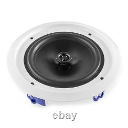 The speakers fit standard cutouts, and the compact amplifier keeps interiors sleek. Their white finish ensures the speakers subtly complement any room's design.Moisture-resistant kitchen and bathroom ceiling speaker kit to minimise damage and provide constant performance. Bluetooth bathroom ceiling speaker system allows for wireless audio streaming from smart devices. Two 8-inch Bluetooth kitchen ceiling speakers with rust-resistant aluminium grilles to stay in good condition.