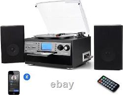 CD player and recorder: Convenient CD changer for recording and playing with one press. Twin detachable speakers: With separate, not inbuilt, stereo speakers, simply playback and listen to your records for better listening experience. Vinyl to MP3 Recording: Recording vinyl records directly to digital format in USB/SD card. Backup old vinyl in your PC or laptop. This is the best way to play your old records, no need computer, no need software. Perfect combo of trendy elements and retro style with classical color series stream your treasured music collection from Bluetooth, CD player and recorder, and it also can record vinyl records directly to digital format in USB/SD card. Built-in Bluetooth Receiver lets you stream your music wirelessly to the DIGITNOW! You only need to turn on Bluetooth device, search for the product, then match pairing each other. Now you can enjoy your favorite music. CD player and cassette tape Function. Easily insert your favorite CDs and cassette tape into the built-in Player and enjoy the music through the powerful stereo speakers.