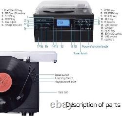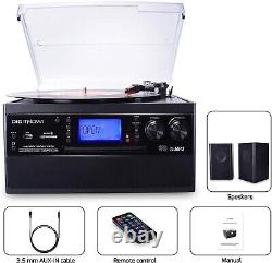 A Full-Function handy remote control is included, allowing you to sit back and relax and enjoy your favorite tunes! Whether you're savoring the warm sound of vinyl or streaming digital music via the built-in Bluetooth receiver, the included stereo speakers offer crisp, making it an enticing choice for those who enjoy the music with the feeling of roaming through the time. Recording vinyl records directly to digital format in USB/SD card.