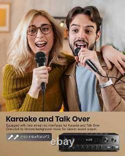 In addition to the Bluetooth function, you can enjoy a range of audio sources including USB (Maximum 32G), SD card (Maximum 16G), 2 pairs RCA audio inputs for for CD player and DVD player, 2 1/4 inch(6.35mm) microphone inputs, 3.5mm AUX IN, and FM radio with our home theater receiver bluetooth amplifier. Supports treble and bass adjustment and microphone volume control. The professional integrated indoor stereo receiver is equipped with the new updated 5.0 bluetooth. It will increase the stability, sound quality and use distance. Stay connected up to 40+ feet/ 10 meters away and it works with latest devices including smartphone, tablet, laptop, computer, etc. Take hosting to the next level with the flexibility of dual 1/4'' microphone jacks. Customize your karaoke nights, events, or presentations w/ independent controls of our home stereo receiver bluetooth amp. The integrated receiver for home stereo has a built in LED display.FM Antenna and Remote Control are included in the stereo amplifier package for distant audio adjustments. Notice: The product needs to be connected to passive speakers to play audio.