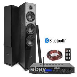 Fenton 2 BOXSHF80B Tower Speaker Set 3x 6.5 Black. 3x 6.5 Woofer and 1x silk dome tweeter. Fenton AV-150BT 5-Channel Home Amplifier. Power output: 2 x 100W + 3x 60W.