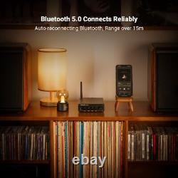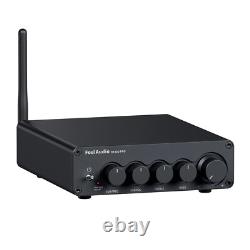 Professional wireless amp with subwoofer frequency, SUB volume, master volume/bass/treble control. No pop sound, no audible noise during the connection. Have a good time with Hifi music journey. Frequency Range: 20Hz - 20kHz (±1 dB). Terminating Impedance: 2 - 8 Ohm.