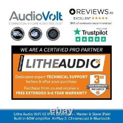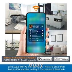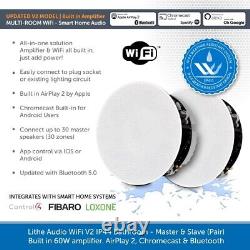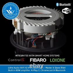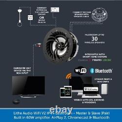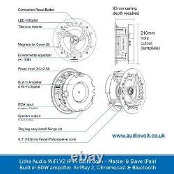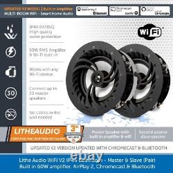 Lithe Audio WiFi V2 IP44 Bathroom Ceiling Speakers Bluetooth App Controlled PAIR. View all of our products. The NEW updated V2 Lithe Audio 6.5 inch WiFi Bathroom Ceiling Speakers (x 2 Master and Slave) are an all-in-one solution for multi-room music streaming in bathrooms or wetrooms. Now with AirPlay 2, Bluetooth and Google Chromecast built-in. These innovative WiFi ceiling speakers are IP44 rated for use in bathrooms or wetrooms and they provide an all-in-one solution for multi-room music streaming.