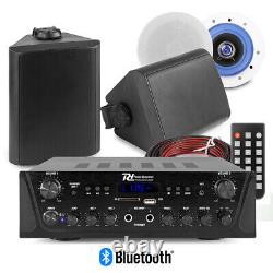 Dimensions (L x W x H): 282 x 242 x 80mm. Accessories: Power Cable, Remote control. BBA4464 - 5 Black Wall Speaker Set Weatherproof Outdoor Garden Terrace Background Music.The weather resistant enclosure with aluminium grille makes this speaker pair ideal for indoor or outdoor use, like terraces, outdoor events, swimming pools, garden areas and marine or boat use. 2-Way Bass reflex speakers with crossover network. Suitable for In- and Outdoor use.
