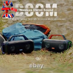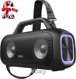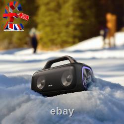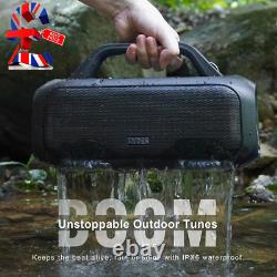 25 Hours of Playtime: Powered by a rechargeable battery, this outdoor speaker can play for up to 25 hours at 50% volume. It's the ultimate companion to extend your adventures. IPX6 Waterproof: Built tough for the outdoors and encased in a robust metal grid, this IPX6 waterproof speaker fearlessly withstands splashes, rain, or spills, ensuring the music plays on without interruption, come rain or shine.Dynamic Light Show: Light up the party vibes with colorful lights. Whether you're hosting a lively party or enjoying daily music listening, the dynamic lighting effortlessly integrates with your lifestyle. Wireless Stereo Pairing: Double the sound power for a bigger party experience. Connect two DOSS Extreme Boom S speakers wirelessly for an immersive stereo sound soundscape and take the energy of your party to new heights.