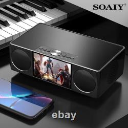 SOAIY S99 Portable Bluetooth Speaker HiFi Wireless Speaker Stereo Audio Subwoofer Best Speaker 8000mAH Power Bank Video Player. Product Name:Clock Bluetooth speaker Display:TR 4.3 inches Battery:3.7V 8000mah FM radio:87.5-108 MHz Video:Support Video playback supports MP4, AVI, RM, WMV, MOV, ASF, MKV, FLV, DAT and other video formats, H.