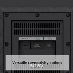 An HDMI ARC port lets you connect to compatible TVs with a single cable, with alternative connections offered by optical or analogue ports. It also connects wirelessly with a range of compatible Sony Bravia TVs. Dimensions: W x H x D in mm.