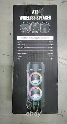 Speaker, 30W Wireless Speaker with Double 4'' Full range Stereo Sound, Mixed Col. A76 Bluetooth speaker is designed with two Full range configuration with loud stereo sound, the huge sound from two 4'' Full range speaker. The sound quality is impeccable whether indoors or outdoors. Let your ears enjoy high-definition stereo sound quality anytime, anywhere. Insert the 3.5mm AUX data cable provided by the speaker to your TV and laptop to play the audio of the device at any time.