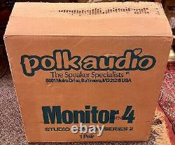 Vtg Polk Audio Monitor 4 Series 2 Simulated Wood Grain Stereo Speakers. In great working condition with original box and packagings.