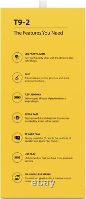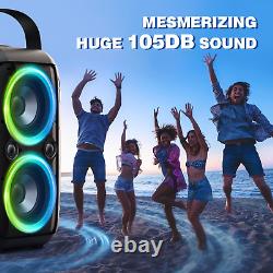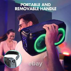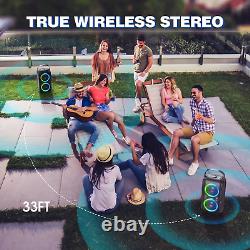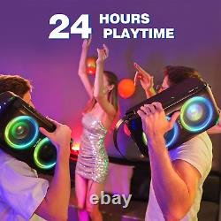 The portable wireless Bluetooth speaker is rugged and durable, coupled with high-quality sound, to ensure a relaxed atmosphere at home or party, and enjoy the dual impact of vision and hearing, boosting more off your party. 24H Playtime & 160W Wireless Stereo Pairing: The powerful long-life battery technology allows your outdoor wireless speaker to play 24 Hours.