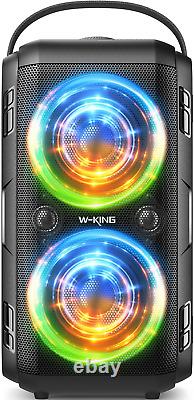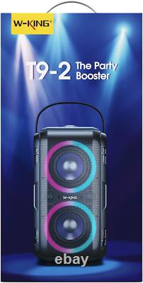 W-KING Bluetooth Speaker Loud- 180W PEAK80W Super Bass, Huge 105dB Sound, Party Crazy Bass & 105db Huge Sound: The Cool W-KING T9-2 loud Bluetooth speaker has thunderous bass, rich mids, and high-pitched tones that burst into a heady rave. Let your ears enjoy high-definition stereo sound anytime, anywhere. The T9-2 outdoor party portable Bluetooth speaker has an incredibly loud 105dB sound, 24.04" woofers, and 21.2" tweeters tuned to produce overwhelming bass and crisp highs, Bass Reflex Tube for deeper and natural bass with fewer distortions. Bass Reflex Tube Technology & Portable Handle: The T9-2 80W RMS (180W PEAK) bluetooth speaker adopts advanced bass reflex tube to ensure deep and resonant bass, which enhances the overall audio experience, allowing us to enjoy a more dynamic and bodily Immersive sounds.