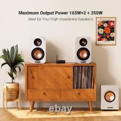 Puissance de sortie MAX : 165W×2+350W. Mode d'entrée : Bluetooth et RCA. Distance de transmission Bluetooth : jusqu'à 50 pieds. Le package comprend : amplificateur BT30D Pro, alimentation, antenne Bluetooth, manuel utilisateur.