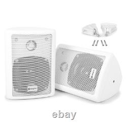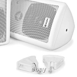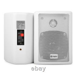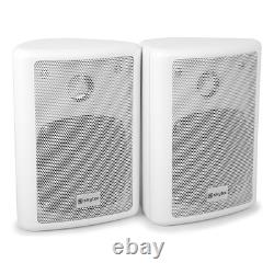 BBA0567 - Enceintes murales blanches (x2) 4 Musique d'ambiance pour restaurant et bar 75W. Une paire d'enceintes stéréo compactes à 2 voies, avec des boîtiers en ABS et une grille en métal robuste.Convient pour être posée librement ou montée au mur via un support de fixation réglable. Le design trapézoïdal permet aux boîtiers d'être montés proprement dans les coins, les rendant idéaux pour les applications Hi-fi et son surround. Connexions par bornes à vis rouge/noir. Livré avec supports de montage. Woofer de 10 cm (4) en polypropylène.