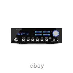 Poids par ensemble : 3.5kg. DDA1245 - Amplificateur Bluetooth stéréo HiFi audio domestique USB RCA AUX entrées micro karaoké 120W. L'amplificateur Fenton AV120BT est un amplificateur HiFi 2x 60W polyvalent avec affichage dynamique qui délivre le son parfait pour votre système de home cinéma. Facile à connecter et à utiliser avec des entrées audio RCA standard à l'arrière pour connecter votre TV ou un autre appareil via le câble AUX. Doté d'un port USB, Bluetooth, contrôle des basses/aigus et de l'écho, de deux entrées micro, refroidissement forcé, etc.Parfait également pour des applications comme le karaoké et la musique d'ambiance. Utilisant la technologie sans fil Bluetooth pour le streaming audio. Contrôle des basses/aigus et de l'écho. Deux prises d'entrée micro. Impédance : 4 - 8 Ohm.