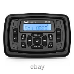 Section Tuner FM Stéréo Fréquence Zone US, Europe. Bluetooth : diffusion musicale à longue distance. Puissance de sortie RMS : 4 x 45W. Conforme à la norme ASTM B117 sur le sel/brouillard.