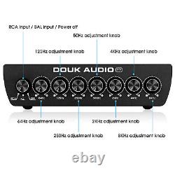 Câble jack stéréo 1/8 & 1/4. Préampli égaliseur audio à 7 bandes HIFI pour enceintes Préamplificateur XLR/RCA équilibré. T7 sans bouton de contrôle du volume, il émettra le niveau nominal. Les sorties XLR et RCA fonctionneront simultanément. Égaliseur à 7 bandes : Avec un contrôle indépendant et riche des bandes de fréquence (64Hz/125Hz/250Hz/500Hz/2KHz/4KHz/8KHz), dans une plage de -6dB à +6dB, le T7 peut compenser les défauts des enceintes et du champ sonore en ajustant les fréquences hautes, moyennes et basses à 7 bandes, et modifier diverses sources sonores.