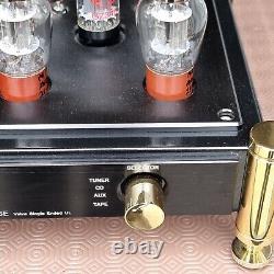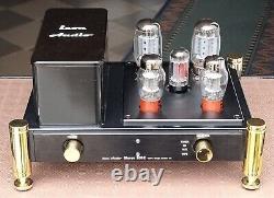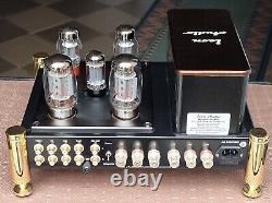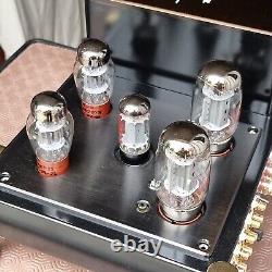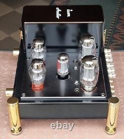 2x 6SN7 valves de pilote. 2x 20w RMS continus par canal. Rapport signal / bruit -90db. Réponse en fréquence meilleure que 20hz-20kHz +0 - 0.5db. Distorion harmonique totale typiquement inférieure à 0.1% 1khz. Convient pour des haut-parleurs de 4 à 16ohm. Transformateurs EI en acier japonais avec cuivre à faible teneur en oxygène.Résistances de film métallique de haute qualité de 2W, et fil enroulé. Câble audio en PTFE argenté. Transformateurs de sortie sur mesure enroulés à la main. Circuit de chauffage à point central pour un minimum de ronflement. Bornes d'entrée et de haut-parleur plaquées or.