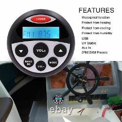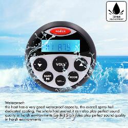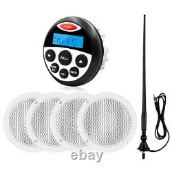 Récepteur radio Bluetooth étanche pour bateau + haut-parleurs de 4 pouces + antenne. Récepteur stéréo Bluetooth étanche pour bateau Lecteur audio voiture MP3 Système audio étanche IP66 pour bateau, yacht, moto, bain à remous, VTT, UTV. Pour les VTT, UTV, motos, bateaux de pêche, cabines cuddy, bateaux de ski et motomarines, l'unité est également parfaite pour les piscines spa, les quads, les voiturettes de golf et les VR.