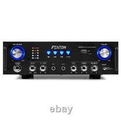 Le Fenton AV100BT est un amplificateur HiFi polyvalent de 2x 50W qui délivre le son parfait pour votre système home cinéma. Une autre fonctionnalité pratique de cet amplificateur HiFi compact est le lecteur de médias USB/SD intégré qui vous permet de jouer vos chansons MP3 préférées directement depuis une clé USB ou une carte SD. Doté d'un port USB, de la technologie Bluetooth, de contrôles de basses/aigus et d'écho, de deux entrées microphone, de refroidissement forcé, etc. Parfait également pour des applications telles que le karaoké et la musique d'ambiance. Amplificateur HiFi 2 x 50W.