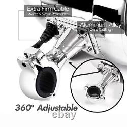 Haut-parleur au design soigné : surface traitée avec soin, couleur noire et chrome disponible, forme classique de balle, apparence parfaite lors de la conduite. Tension d'entrée : DC 10-16 V. Télécommande filaire à fonction complète. Pince de haut-parleur de direction 2.