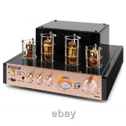 Dimensions (L x l x H) : 200 x 200 x 310mm. CCA2115 - Amplificateur stéréo à tubes avec Bluetooth, ampli à tubes HIFi, audio domestique, TA60. L'amplificateur à tubes HiFi TA60 de Fenton est un ampli de très haute qualité avec des détails chromés et un panneau avant en aluminium qui s'intègre parfaitement dans votre design intérieur. Il possède des préamplificateurs à tubes intégrés, qui offrent des tons détaillés et chaleureux lorsqu'ils sont connectés à des enceintes passives appropriées. Cet ampli à tubes HiFi vous permet de coupler un appareil intelligent approprié et de diffuser de l'audio sans fil.C'est parfait pour une écoute à domicile décontractée, car vous pouvez rapidement coupler un smartphone, une tablette ou un ordinateur portable et lire toute la musique que vous souhaitez sans aucun câble qui vous gêne. Une autre façon de lire de la musique à travers cet amplificateur stéréo domestique est d'utiliser le lecteur MP3 intégré.